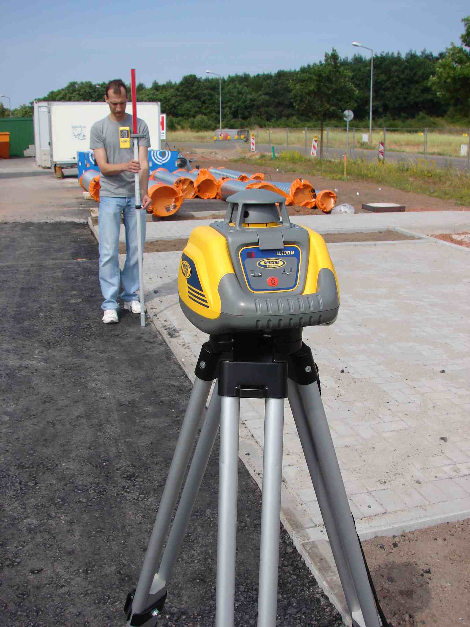 The Spectra Precision® LL100N Laser Level is a complete one man leveling crew in a case. A complete system is contained in a single hard-shelled, portable carrying case – the laser, receiver, clamp, tripod, and grade rod – for easy transportation, storage, and use. A standard case with laser and receiver only is also available.